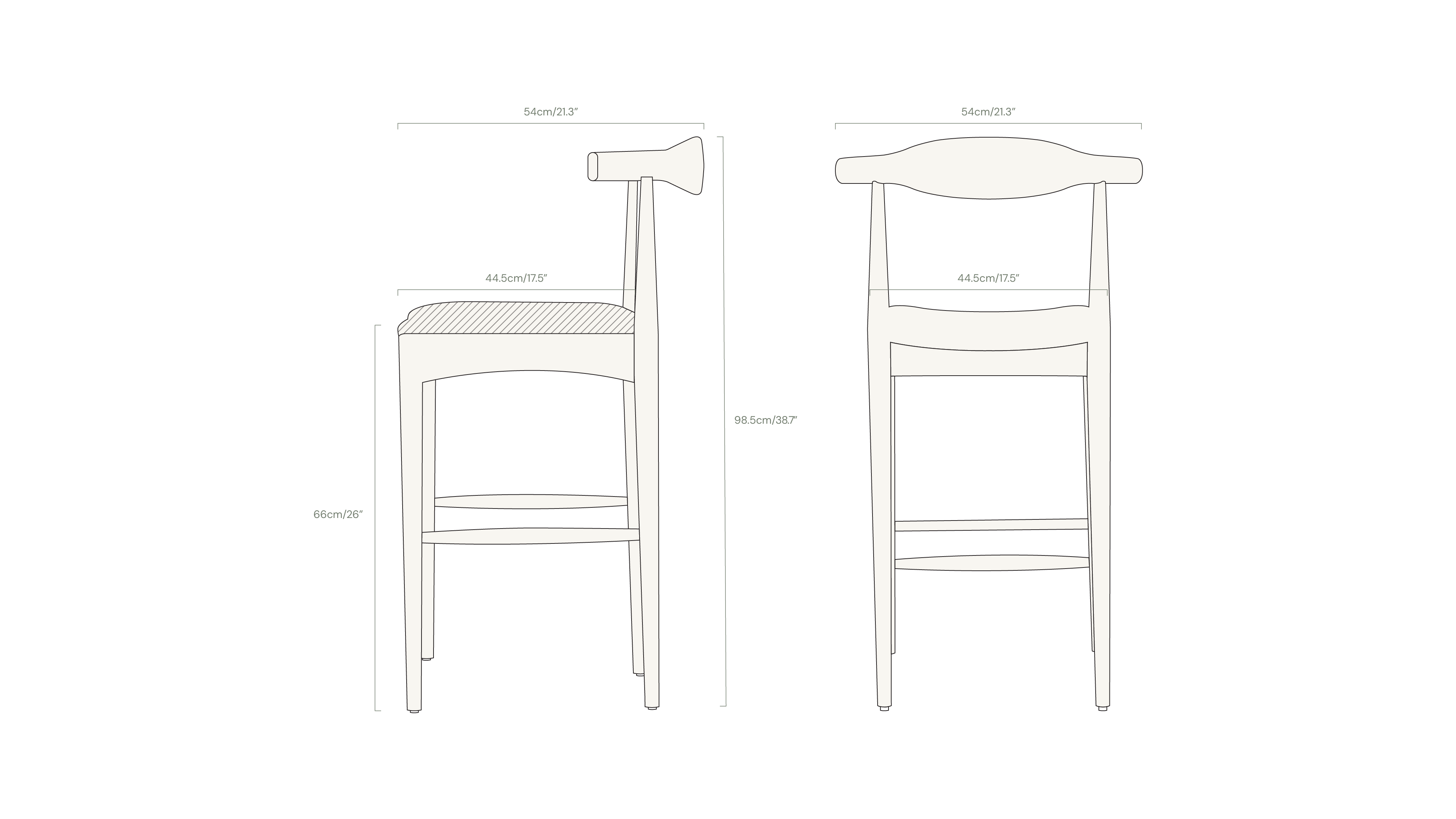 A true to heritage mid-century kitchen bar stool. An inspiration from Hans J Wegner CH20 elbow chair, one of the greatest creations dating back to 1956. A Danish style with a classic appeal making its way back in design lead interiors.
