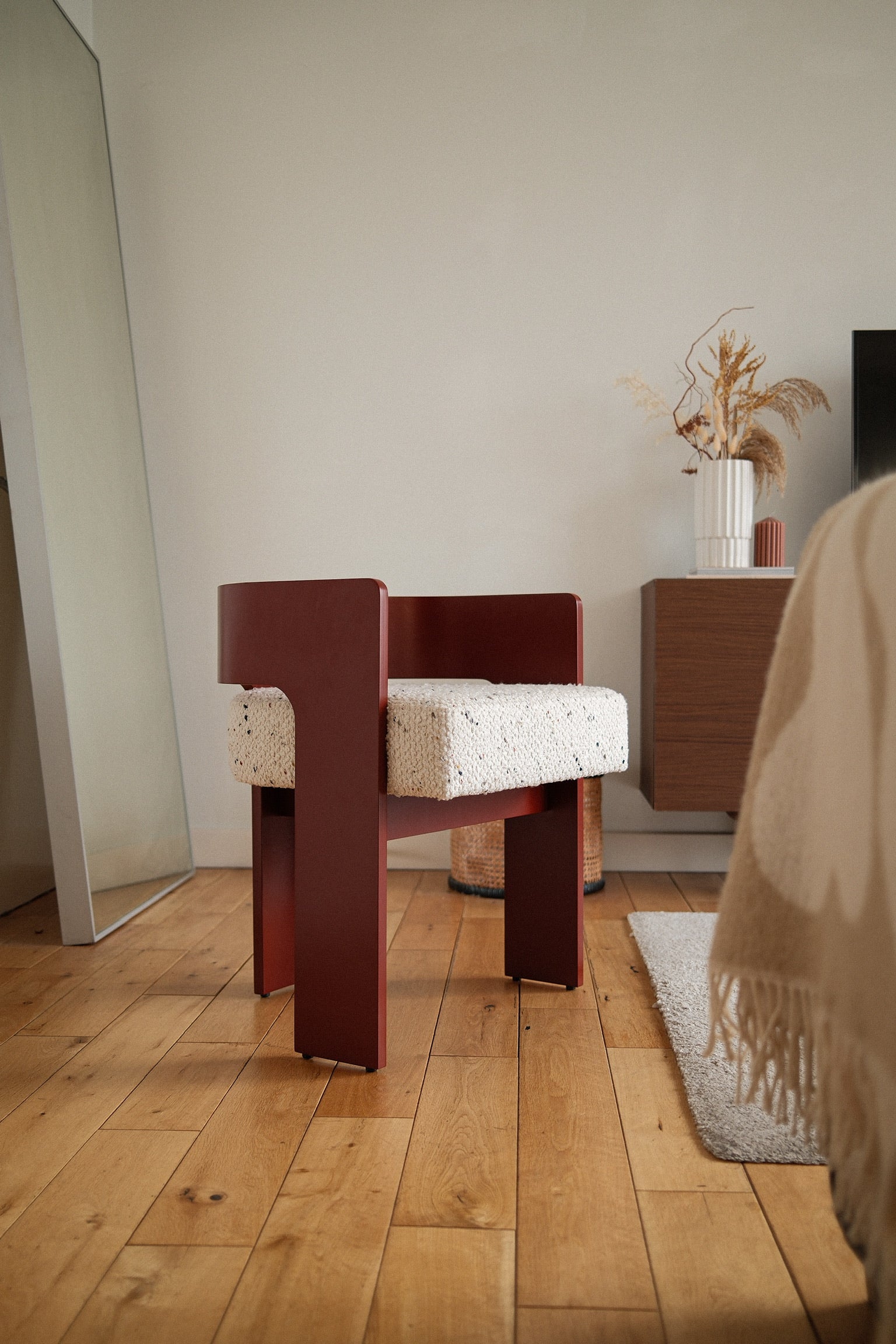Introducing the reimagined Hannah Chair, now available in a striking limited edition deep burgundy RAL semi-gloss finish. This modern classic is elevated through a new spray technique that delivers a sophisticated sheen, offering a rich pop of colour without compromising on elegance.
